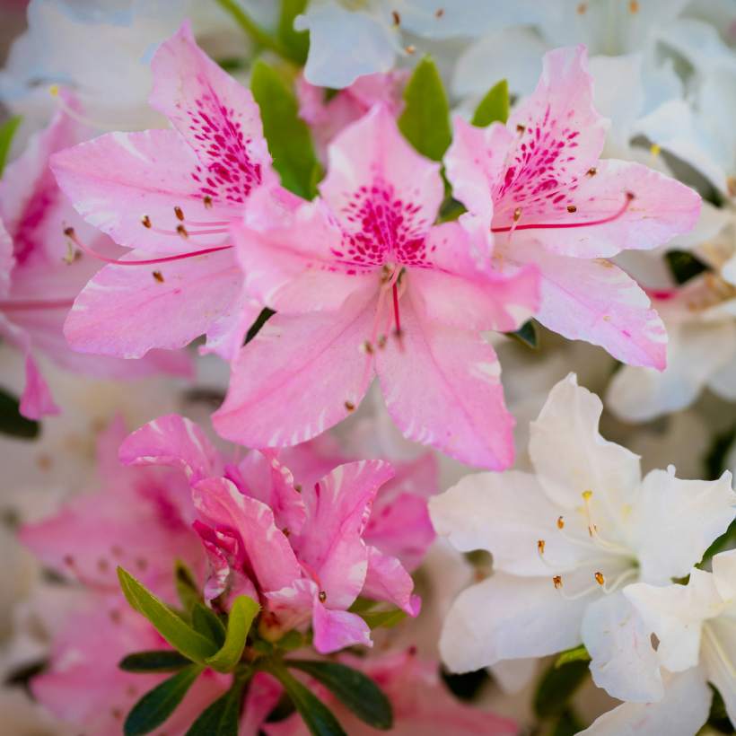 - Azalea 'Northern Hi-Lights': Tato azalka zaujme krémově bílými květy s jemným žlutým středem. Je mrazuvzdorná až do -34 °C a je skvělou volbou pro ty, kteří chtějí do zahrady přidat trochu kontrastu.
